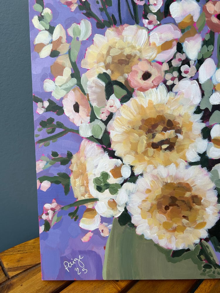 This is an original acrylic painting on wood panel, painted by me! I am inspired by flowers and bright colors.